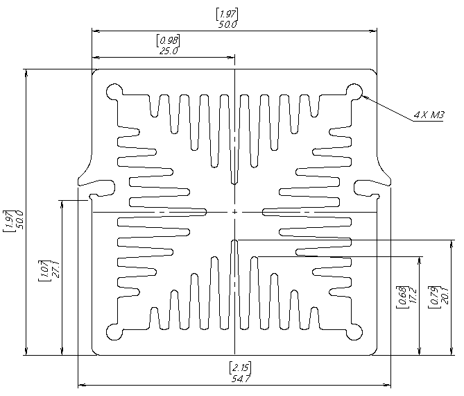 Description: Extruded profiles for cooling aggregates 50 [1.97] x 50 [1.97]