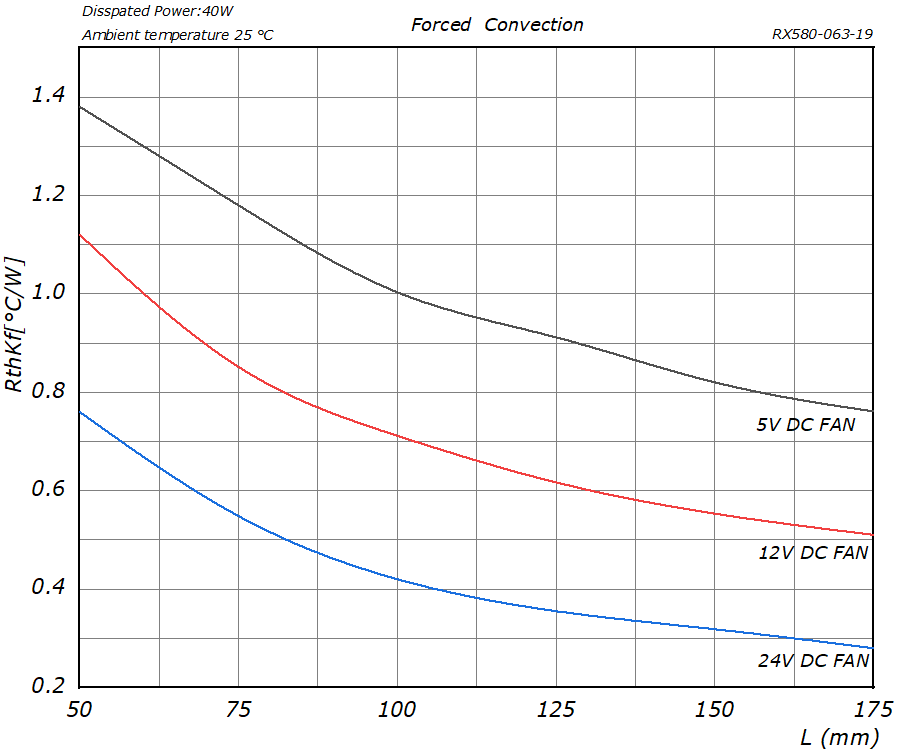 The following thermal resistance parameters are tested in the wind tunnel in the laboratory for reference only. The type of fan is critical in practical application.