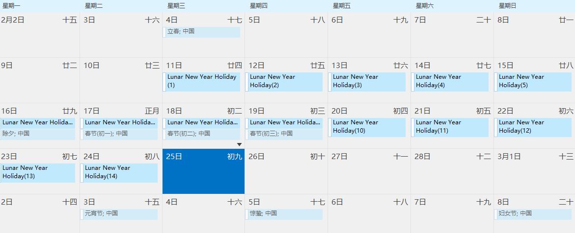 2026 年 中国农历春节假期通知